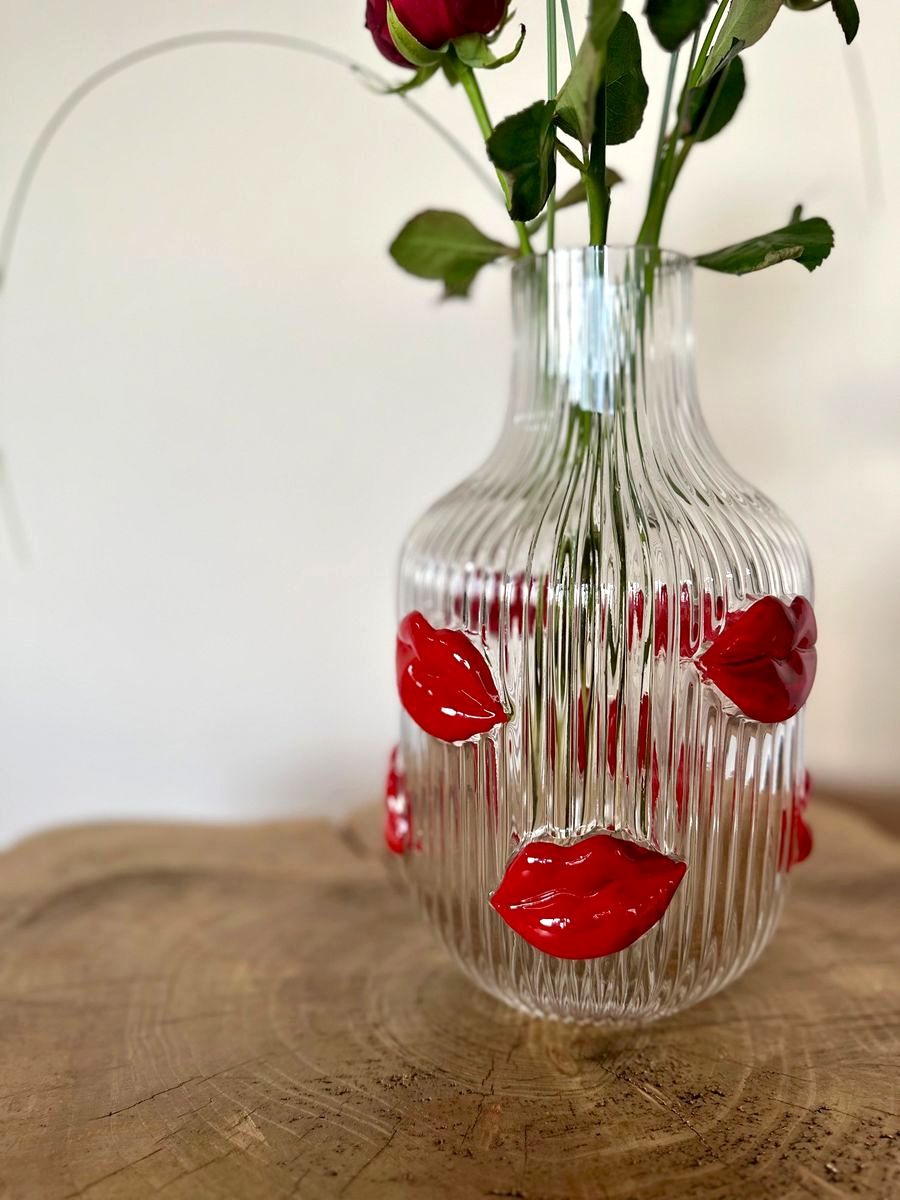 Ausdrucksstarke Glasvase mit Lippenmotiv – Design-Highlight für moderne Interiors