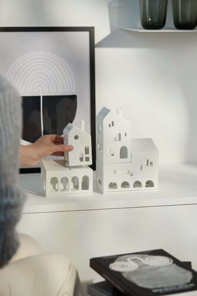 Das Lichthaus „Stapelhaus der Bögen“ von räder ist die neue, moderne Interpretation der beliebten Lichthaus-Klassiker. Das Set besteht aus zwei Porzellanhäusern, die mit einem LED-Teelicht bestückt und anschließend gestapelt oder aufeinandergesetzt werden können.
