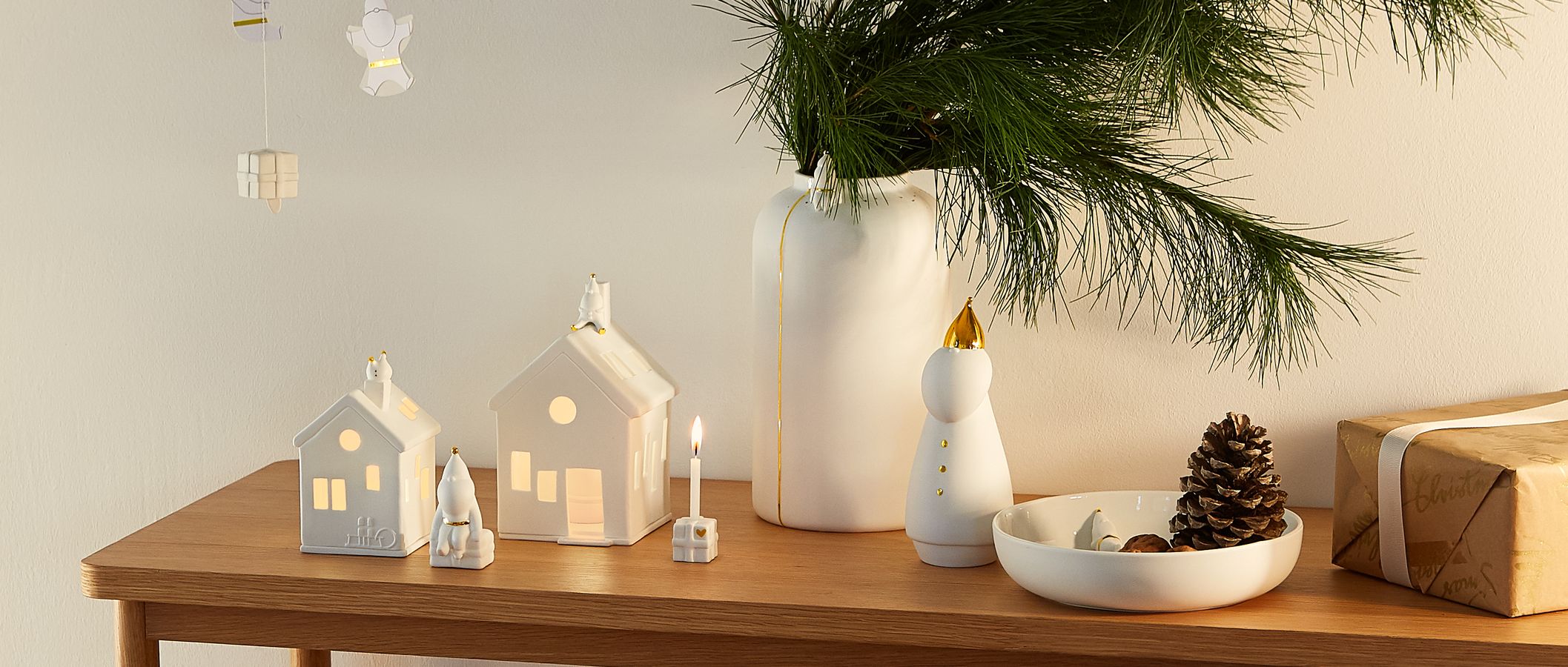 Entdecken Sie liebevoll gestaltete Weihnachtsdekoration, die Ihr Zuhause in eine festliche Wohlfühloase verwandelt. Von Kerzenhaltern und Windlichtern über Weihnachtsfiguren, Baumschmuck und Fensterdeko bis hin zu Porzellanvasen und Leuchtobjekten – hier finden Sie alles, was das Herz in der Adventszeit höherschlagen lässt.