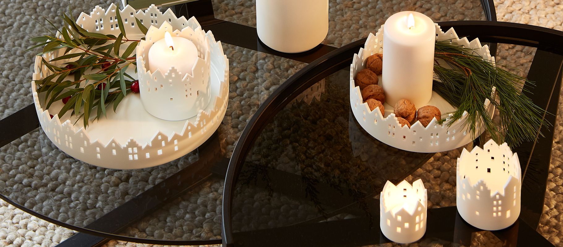 Die weißen Porzellanhütten sind unglasiert und haben ein Lochmuster. Auf der Rückseite haben sie eine Öffnung, um das Teelicht hineinzustellen. Winter- und Weihnachtsdeko von Räder Design Zarte Flocken und zierliche Eiskristalle zieren bei Räder Design die Wintertafel, vereinen Porzellan, feine Gaze und Kerzenlicht zu einem Festtagsmahl. Die Weihnachts- und Winterdeko krönt Tannenspitzen, schmückt Bäume mit hübschen Weihnachtsaccessoires und lässt Sterne durch den Raum tanzen. Sie wollen in Ihren eigenen vier Wänden etwas Weihnachtsstimmung verbreiten. Die Weihnachtsdeko von Räder Design bietet Ihnen eine große Auswahl hochertiger Dekoaccessoires für die Winter- und Weihnachtszeit.