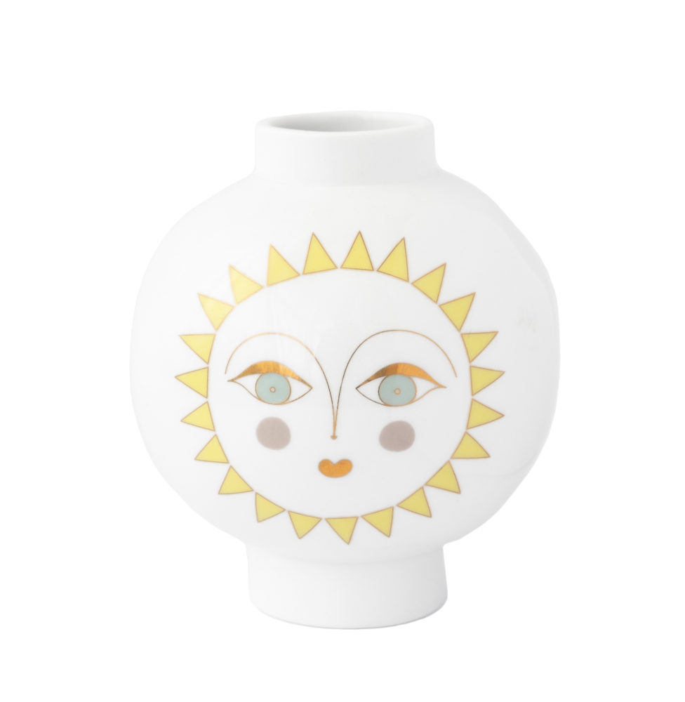 Unter einer farbenfrohen Blütenpracht geben unsere augenzwinkernden Vasen ihrem Zuhause eine ganz persönliche Note. Und selbst ohne Blumen sorgen die Sonnenmotive für eine positive Atmosphäre.