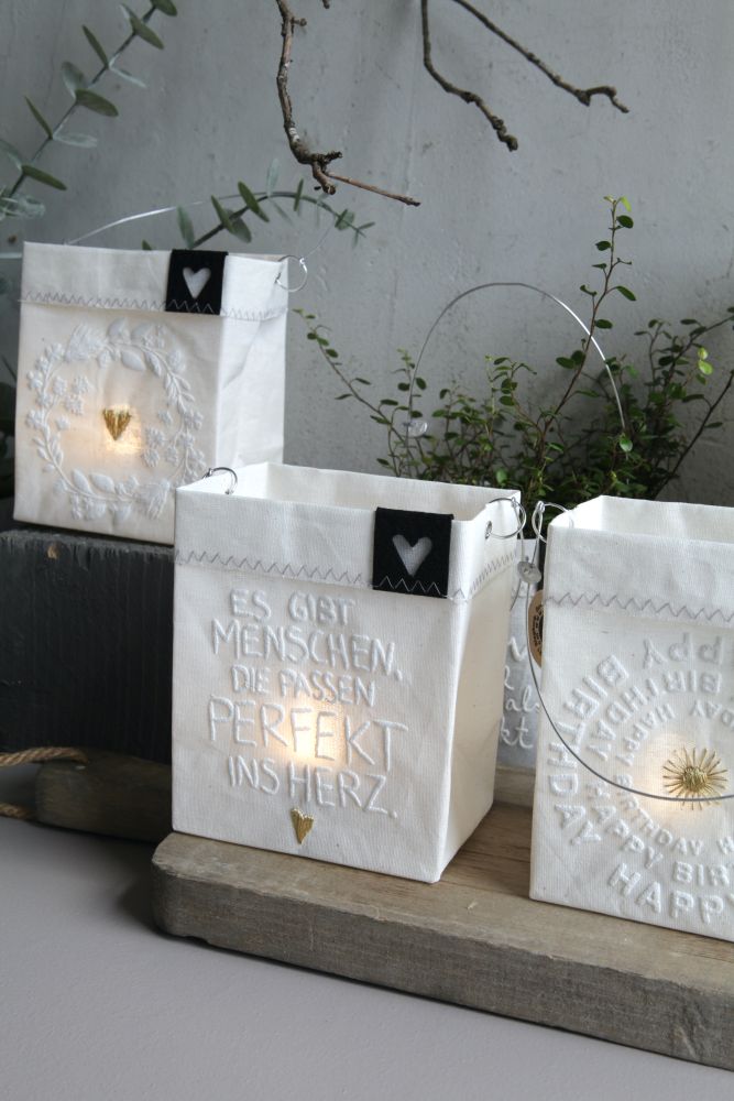 Ein Beutel voller guter WünscheDer Wunschlichtbeutel "Pusteblume" ist ein stilvolles und einzigartiges Geschenk, das den Raum in ein warmes und gemütliches Licht taucht. Der Baumwollbeutel ist mit einer Pusteblume und einem goldenen Herz verziert, durch die das sanfte Lichts besonders schön zur Geltung kommt. Egal ob als Dekoration für das Wohnzimmer, Schlafzimmer oder als stimmungsvolles Accessoire für den Garten, der Wunschlichtbeutel "Pusteblume" sorgt für eine angenehme Atmosphäre und lädt zum Träumen ein. Durch sein zeitloses Design passt er perfekt zu jeder Jahreszeit und ist somit auch ein ideales Geschenk für jeden Anlass. Der Henkel aus Draht, ermöglicht das Tragen sowie Aufhängen des Wunschlichtbeutels. Sie können ihn mit einem LED-Licht zum Leuchten bringen oder Kleinigkeiten wie eine Pflanze oder kleine Geschenke hineinstellen.Größe: 12x15x9 cm
