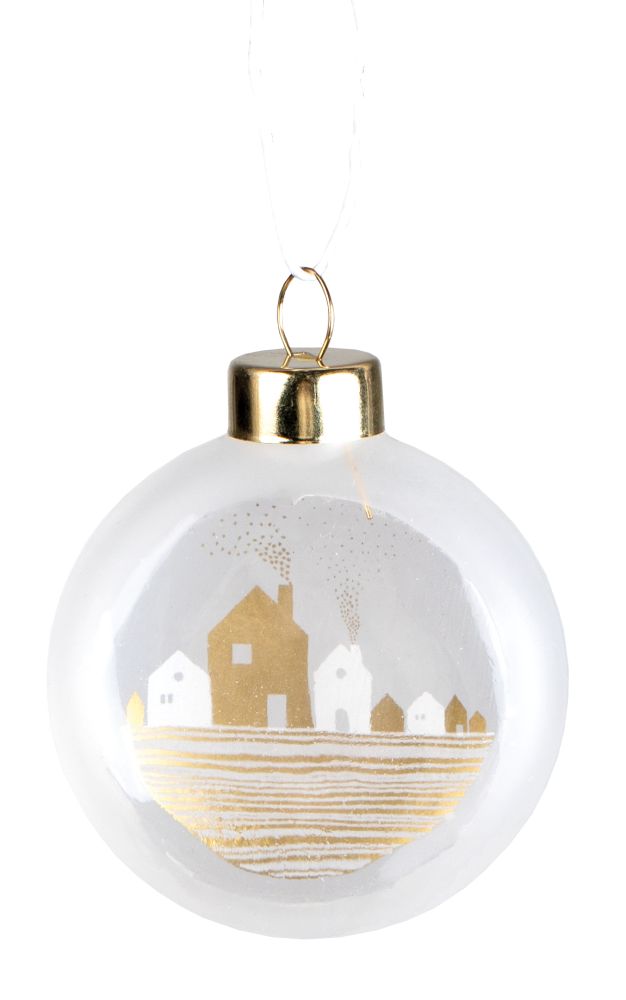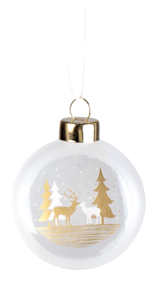 Die flachen Christbaumkugeln von Räder Design aus gefrostetem Glas (beidseitig bedruckt) und einem Band zur Aufhängung, sorgen für einzigartigen Weihnachtszauber ... wo auch immer sie hängen.